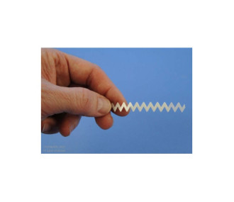Breite ca. 9 mm, Dicke ca. 0,4 mm, Abstand zu den Scheitelpunkten ca. 6 mm, Winkel der Zahnung 60 °, Farbe weiß.