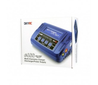 The SKYRC e680 is a high-performance, microprocessor-controlled charger/discharger/power supply with battery management, suitable for all common battery types. It has a balancer for up to six Lithium Polymer (LiPo), Lithium Iron Phosphate (LiFe), Lithium Ion (LiIon) and Lithium High Voltage (LiHV) cells. Its maximum charge current is 8A with a charge power of 80W. For lead-acid batteries, the e680 adds AGM and Cold Charge modes. It can charge AGM batteries and lead-acid batteries can be charged in cold weather in the "Cold Charge" mode.This charger can be powered either by 11 to 18V DC or AC (100 to 240V AC) with the built-in power switching system.In addition, the e680 is also capable of powering DC devices such as a tire sander, stand light or engine tester, etc. The new features and functions are listed and explained on the following pages.