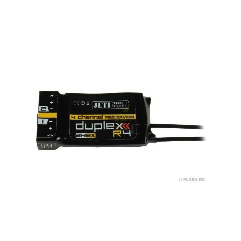 4 channel JETI receiver with reduced range specially designed for small indoor or parkflyer models. Compatible with JETI EX & EX Bus protocols.