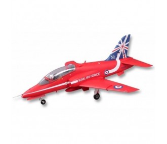 The BAE Hawk is the school plane of the Royal Air Force fighter pilots and it equips the Red Arrows patrol. FMS has faithfully reproduced it with an 80 mm electric turbine powered by 6S which gives it the behavior of a real jet! Brushless powerThe 80 mm turbine is equipped with a 12-page rotor and the 3270 Kv 1930 inline brushless motor offers an excellent power to weight ratio and allows a very high speed flight. You just need to add a 6S 4000 mAh 35 C LiPo battery to power this motorization.Flaps for healthy low speed behaviorWhile the Hawk is particularly fast at full throttle and in smooth configuration, it remains easy to fly at lower speeds, when the drag of the gear and flaps help to slow it down. The flaps also increase lift so that its landing speed is nearly that of a low-wing trainer.Metal gearThe electric retractable gear mechanics are equipped with machined aluminum struts. This means you can land on short grass or a hard runway. The gear legs have a very realistic look.Many detailsMany details add to the realism, such as the raised structure lines, the pilot's bust and the typical aircraft scenery used for "solo" demonstrations at air shows.