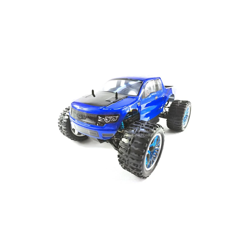 Este Monster truck a escala 1/10 es fácil de usar y funciona a velocidades similares a las de los vehículos nitro.