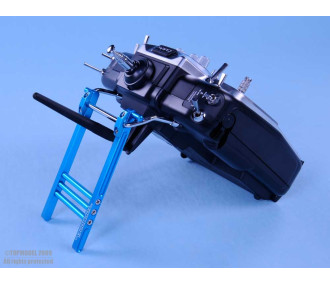 Este práctico y ligero soporte mantiene la emisora en posición semivertical para poder programarla fácilmente en el taller, por ejemplo, o simplemente para no pisar la antena cuando está en el suelo.