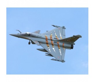 Conçu par l’entreprise Française Dassault Aviation , le Rafale est un chasseur à aile delta à haute manœuvrabilité doté d’un plan “canard”. Les excellentes performances en combat aérien et en attaque air-sol du Rafale lui valent un succès mondial.Alors que le Rafale FMS à turbine de 80 mm a largement attiré l’attention, nous avons également remarqué la volonté des fans de disposer de Rafale de différentes tailles et décors. Après six campagnes d'essais, le Rafale "Tiger Meet OTAN" à turbine de 64 mm FMS a répondu aux attentes de chacun et a été lancé officiellement.Développé pour reproduire à la fois l'aspect et les performances de l'avion réel, FMS a consacré ses décennies d'expérience à la conception de ce Rafale à turbine de 64 mm. Le Rafale 64 mm offre un haut niveau de réalisme, dans la plage maximale autorisée par le budget. On trouve des détails tels que les formes maquettes, l'aile delta, la figurine du pilote, l'intérieur de la cabine, les lignes de structure, les armements amovibles, les réservoirs auxiliaires de carburant, la perche de ravitaillement, le capteur de ciblage, les grilles d'échappement, etc.Comme tous les autres avions FMS, le Rafale 64 mm a été conçu pour réduire au minimum le temps de construction. Les constructeurs expérimentés peuvent terminer le processus de montage en à peine 5 minutes . Une turbine de 64 mm à 11 pales avec un moteur 2840 et un contrôleur 40 A à hautes performances permettent de réaliser facilement les manœuvres typiques d’un jet de chasse avec un son et une vitesse réalistes.