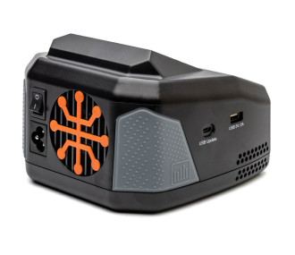 Alimentato direttamente da una presa di corrente, è in grado di caricare le batterie LiFe/LiIon/LiPo/LiHv da 1 a 6S, nonché lebatterie NimH fino a 16 celle e le batterie Pb fino a 12 celle.