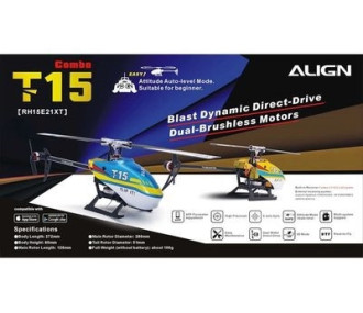 Il T-REX T15, il più piccolo degli elicotteri 3D di Align, ha lo stesso pedigree e design superiore della gamma di elicotteri T-REX. Grazie all'elevata potenza, alla superiore stabilità dei controlli di volo e ai componenti di alta gamma, supera di gran lunga qualsiasi altro elicottero attualmente sul mercato.