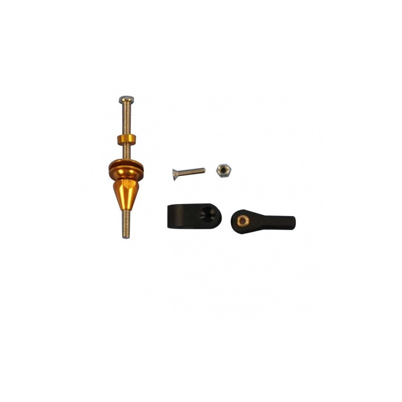1 corno di comando composto da 1 vite lunga, 1 dado speciale in alluminio, 2 rondelle di supporto in alluminio e 1 corno di comando in plastica da avvitare