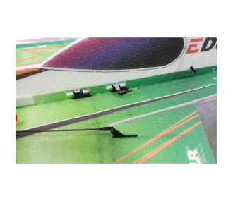 Maggiore stabilità di volo e riduzione del peso - è stato utilizzato un nuovo materiale EPP con un peso inferiore del 10%, pur mantenendo la durata originale. 2. Maggiore resistenza alla torsione - la parte posteriore del modello è stata rinforzata con rinforzi in carbonio per evitare la torsione della coda durante le acrobazie più estreme. 3. Nuovi accessori di precisione - facile regolazione e precisione dei comandi grazie all'utilizzo di precisi accessori MPJET.